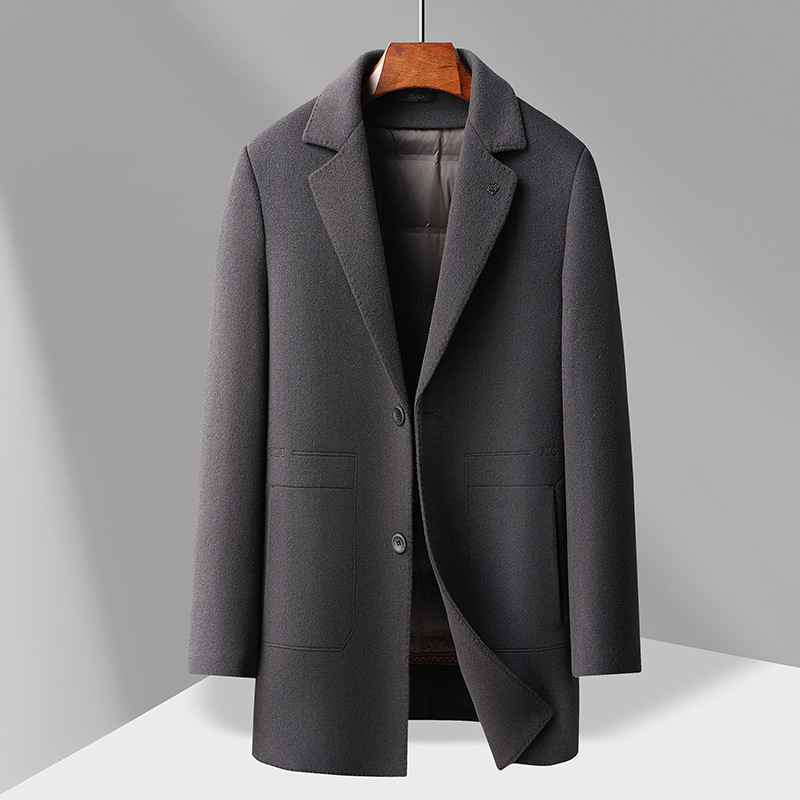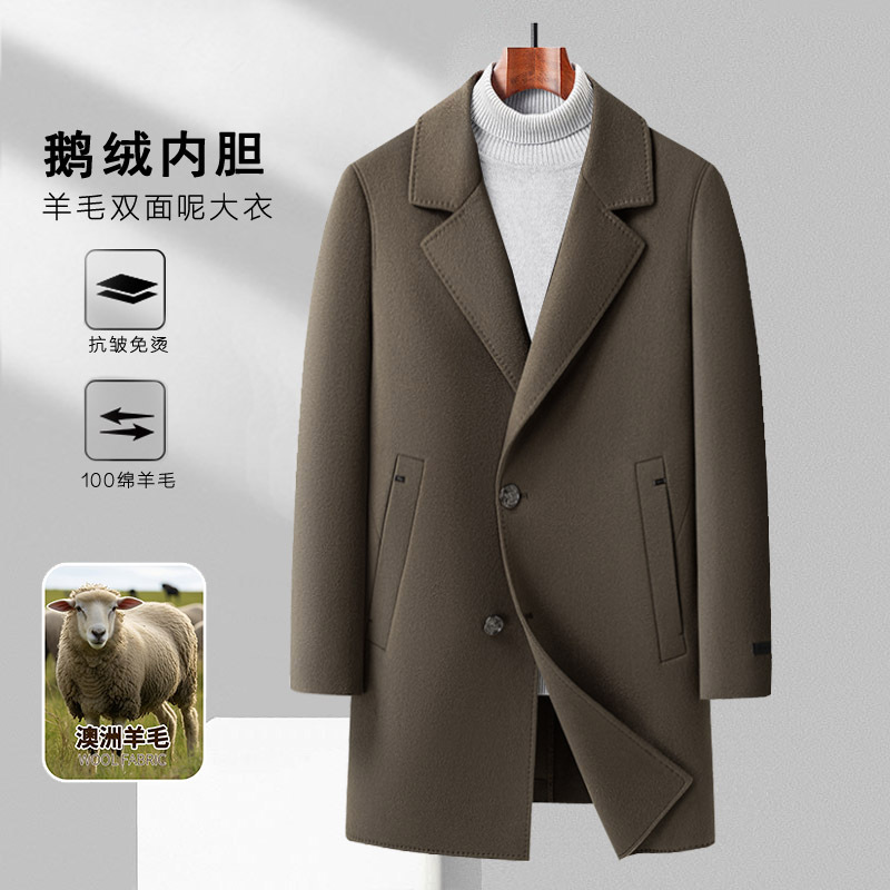 100% ウールの男性コート2024秋冬はガチョウのベルベットの内胆青年ビジネスの両面の毛のコートを脱ぐ