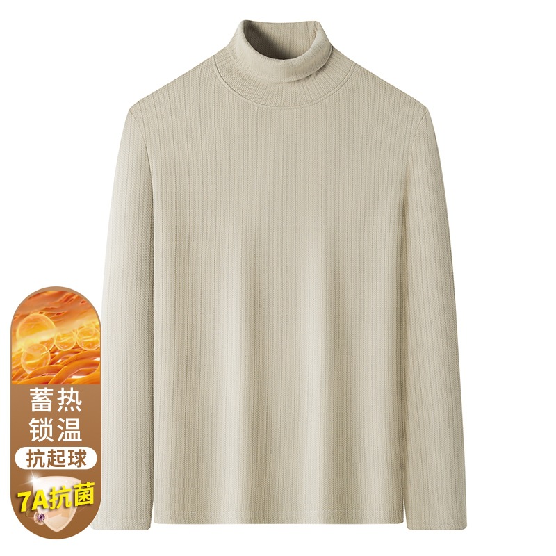 男性tシャツ2024秋冬長袖微弾徳絨毛高襟青年軽豪華レジャー無熱保温シャツ潮