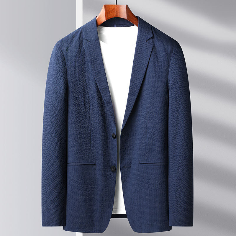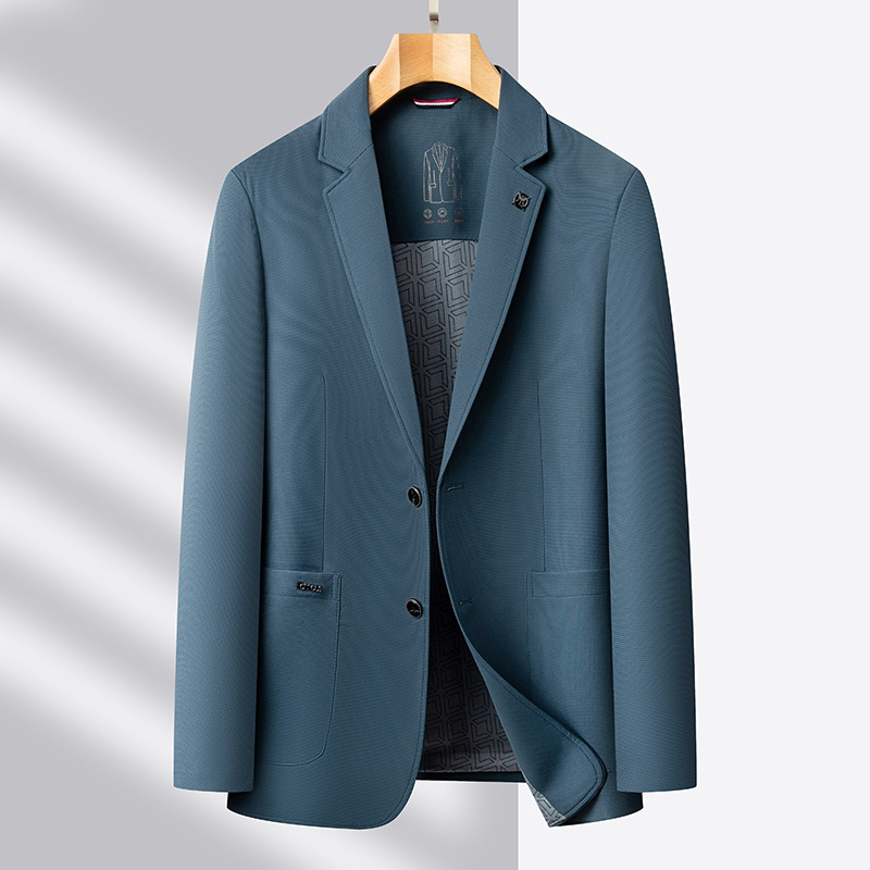メンズカジュアルスーツ2025春夏ライトラグジュアリービジネス薄手シングルウエスタンソリッドカラーストレッチスーツジャケットトレンディ