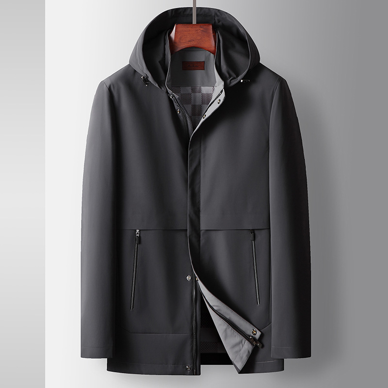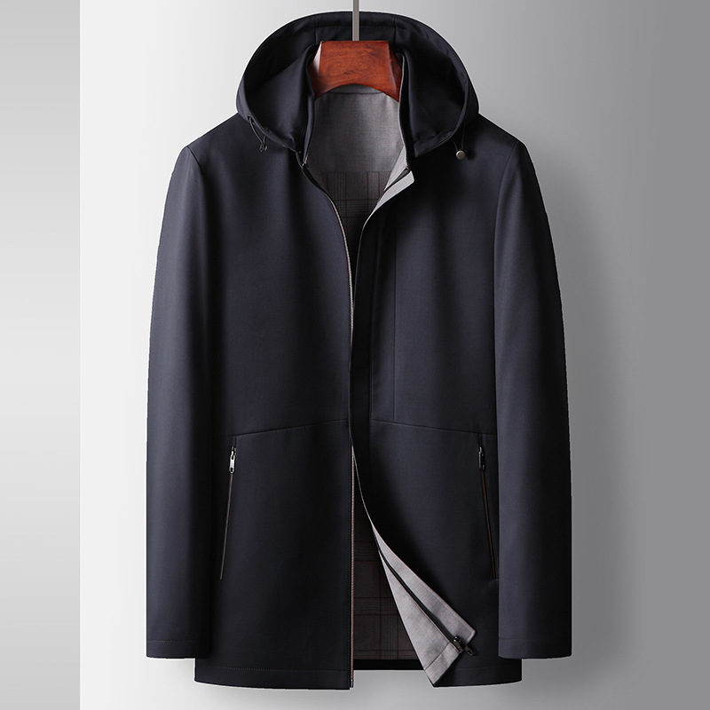 メンズジャケット 2025春秋新作 桑蚕糸生地 取り外し可能な帽子付き 若者向け 高級ビジネスカジュアルジャケット