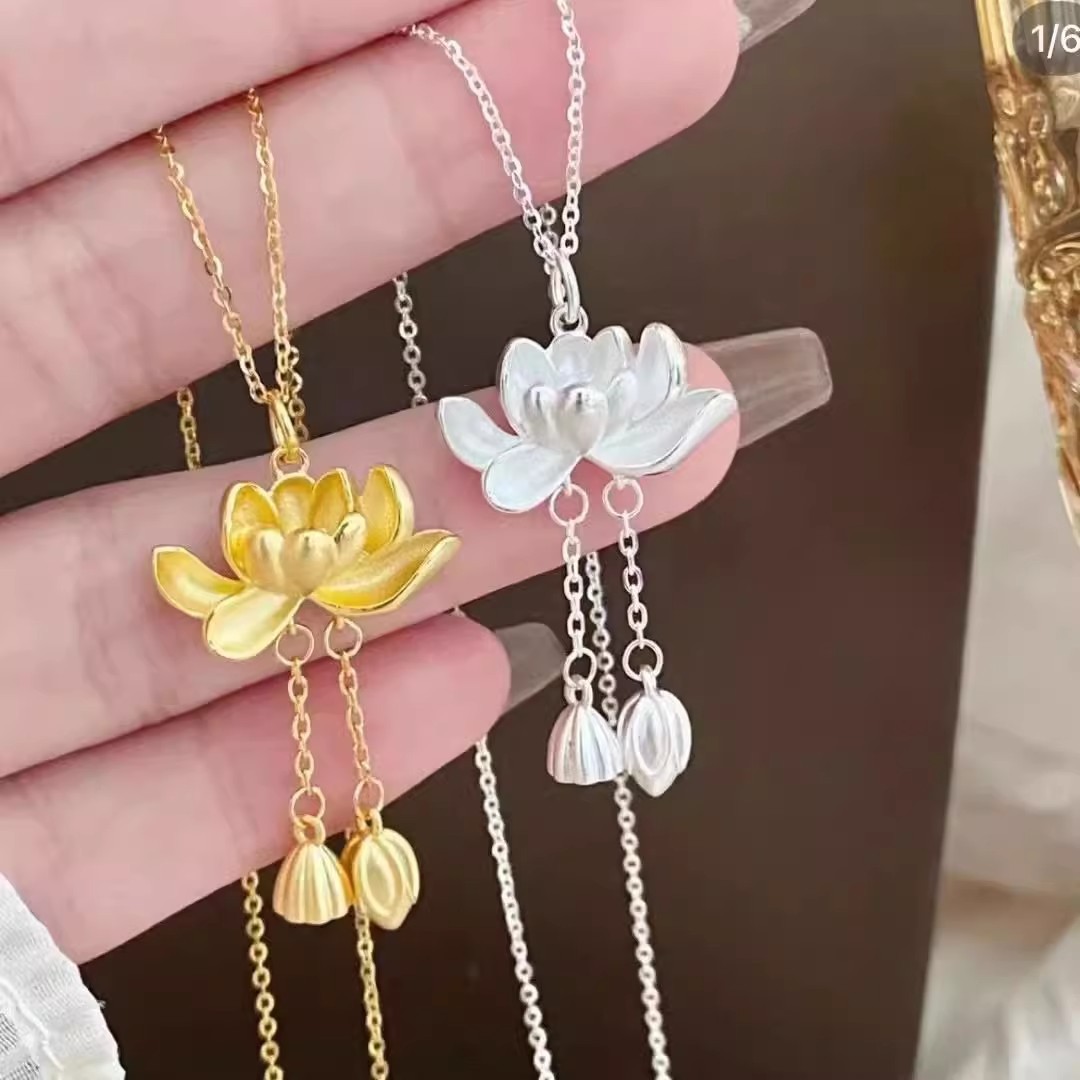蓮の花の流蘇のペンダントのネックレスの女性2023新型の中国風の軽い豪華な大衆の設計の高級感の鎖のチェーンの卸売り