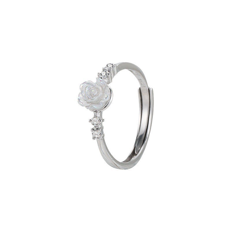 カラフルなツバキの花の指輪の優しい気質は癒し系の透明な花の指の指輪を結んで彼女にダイヤモンドのバラの指輪を入れます。