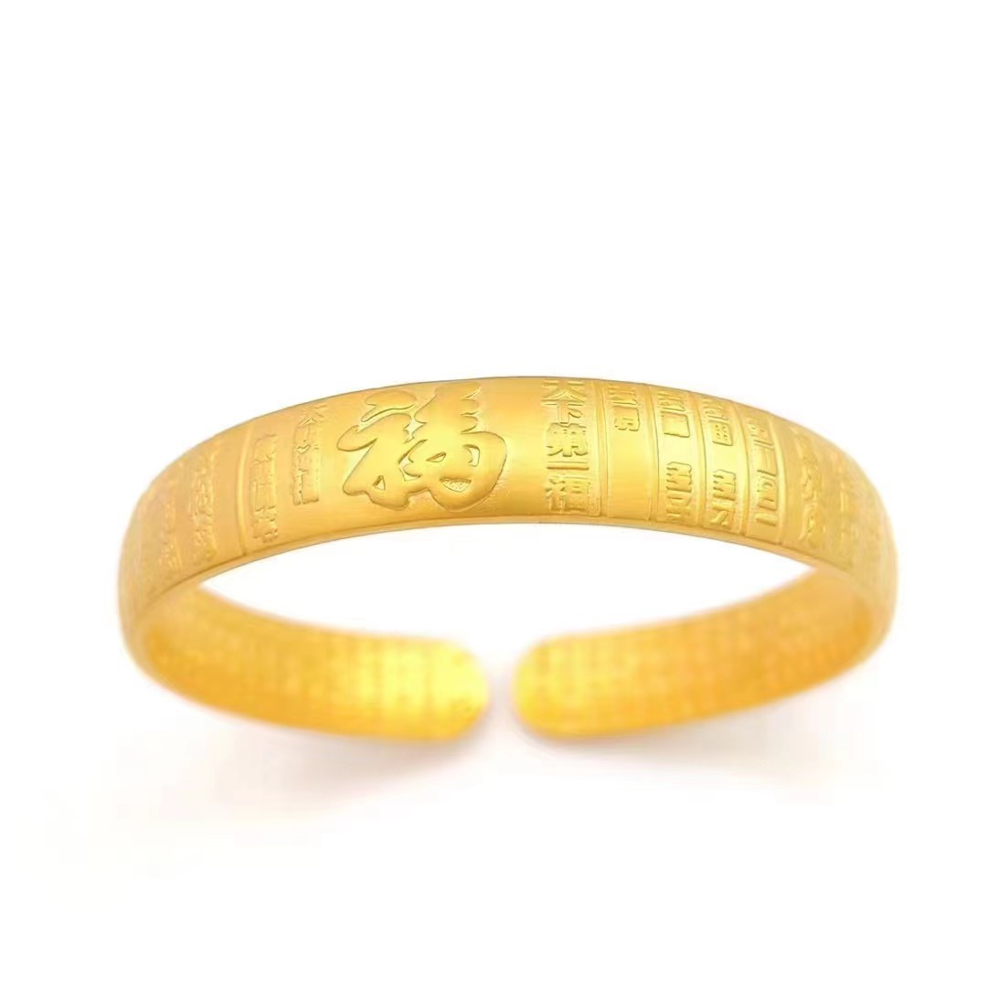 平安喜楽古法伝承開口ブレスレット女性素輪砂金度黄金色フロスト手環生放送同金