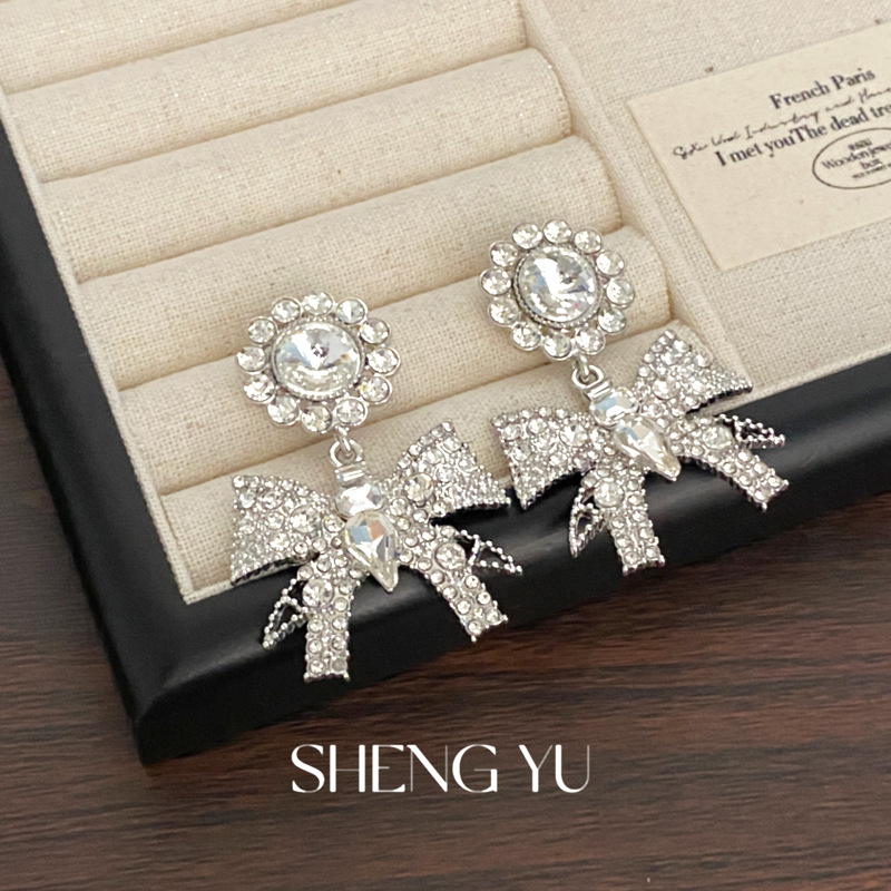 超フラッシュジルコン蝶結びのドリルのピアスは誇張して精巧で洗練されています。
