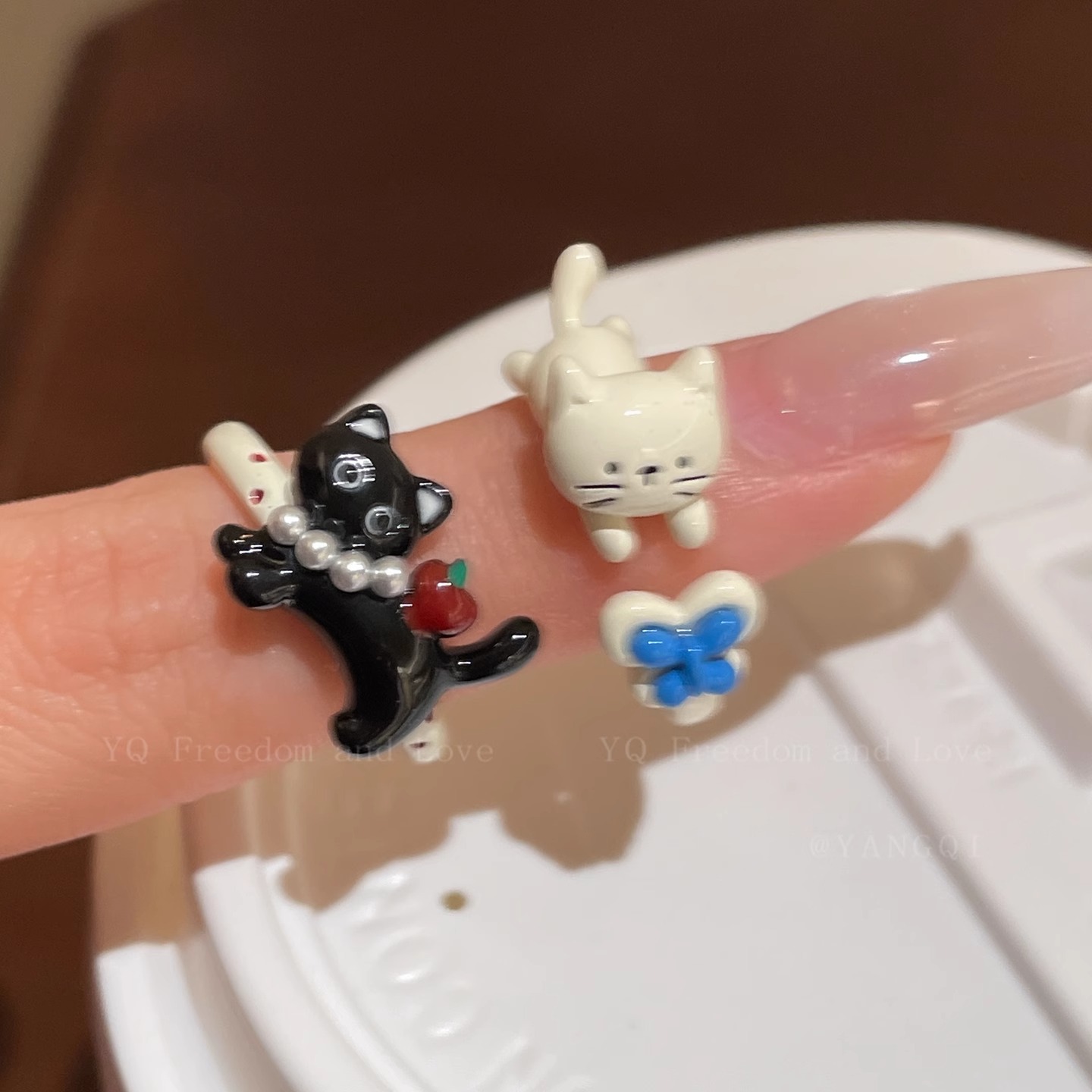 漫画のかわいい猫のペアリング、子供っぽいニッチなガーリーハート、多用途の毎日の通勤、女性用の小さな動物のオープン人差し指リング