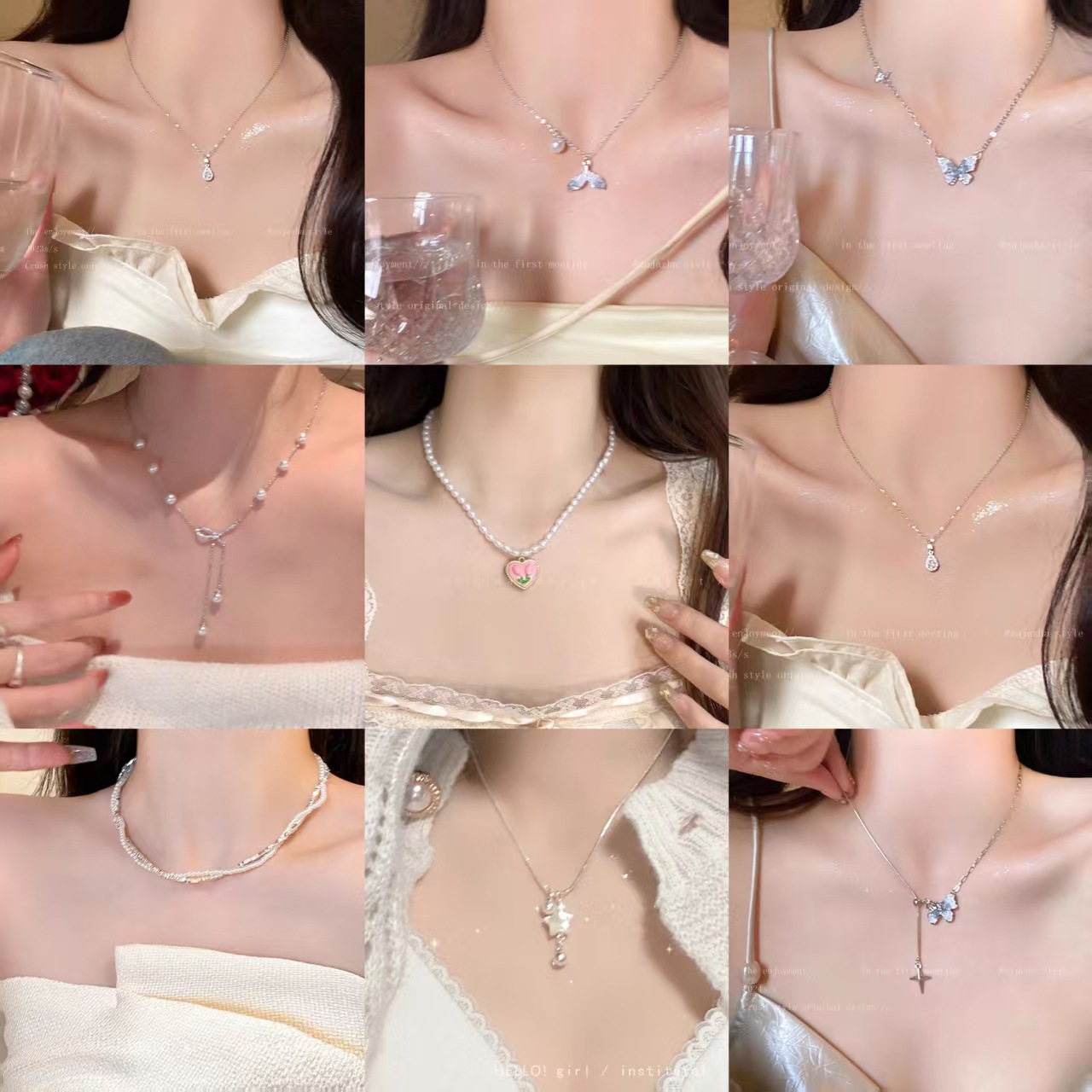 韓国スタイルのパールバタフライタッセルネックレスファッションニッチハイエンド多用途気質鎖骨チェーン女性卸売