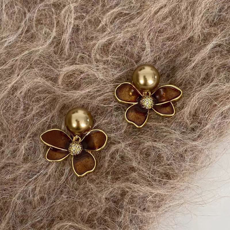 美ラードのレトロな花の真珠のピアス2025新型の冬の優しい高級感の小さい大衆の気質の女性のイヤリング