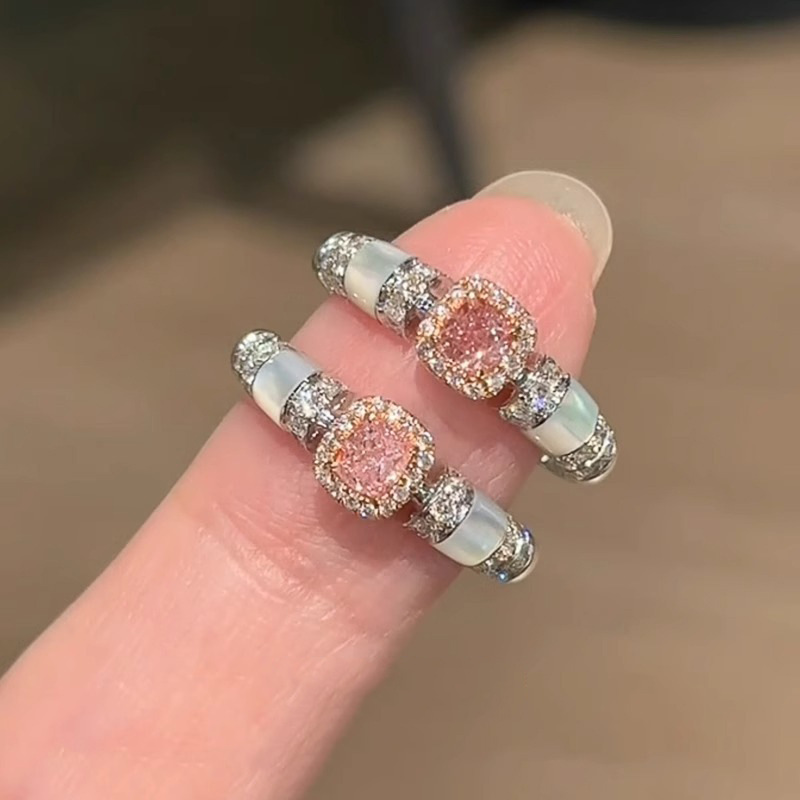 中古風粉角糖ジルコン指輪軽豪華高級感ins風小衆ファッション個性調節可能な指輪
