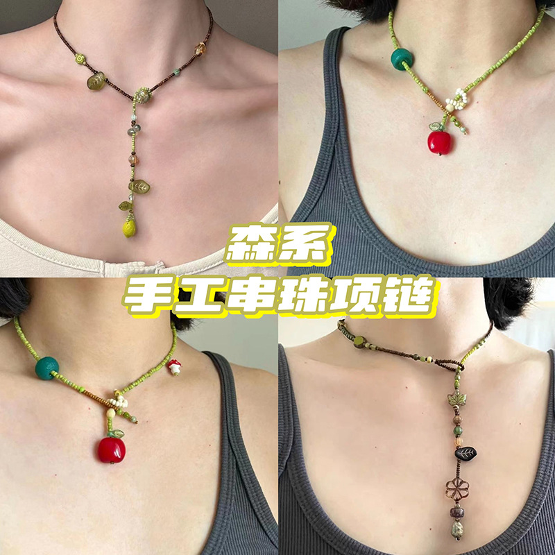 森系新中国式緑カレー色の花手作りビーズネックレス小衆デザインアップルネックチェーン文芸アクセサリー卸売り