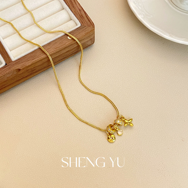 韓国系の軽い豪華な金色の数珠の鎖の骨の鎖の小さい大衆の設計の高級感の独特な百合の黄金の精巧な女性のネックレス
