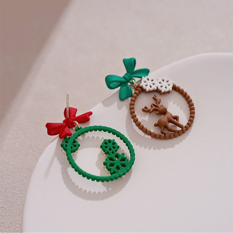 クリスマス花輪ピアス非対称デザイン感クラシック配色小衆高颜値気質女性イヤリングイヤリングアクセサリー