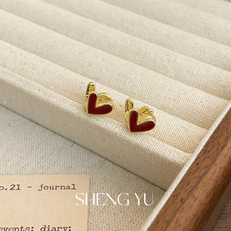 レトロなワインの赤い愛の両面の耳のボタンの小さい大衆の精巧で美しい顔の値のファッションの気質の独特な個性の女性のイヤリング
