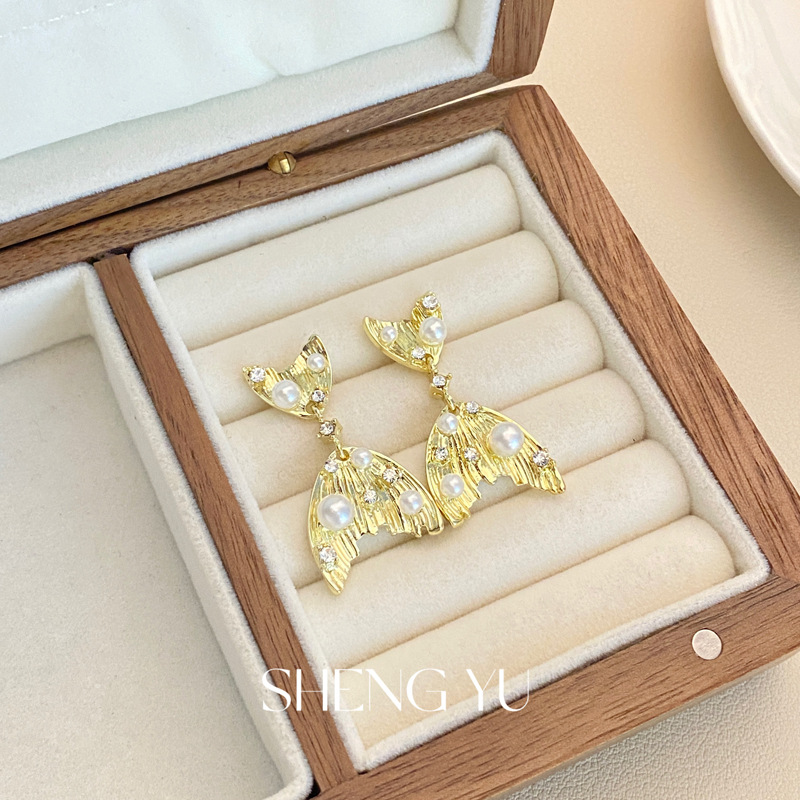 清冷高颜値金色魚尾真珠ピアス小衆気質優雅ファッション日常百合イヤリング耳飾り