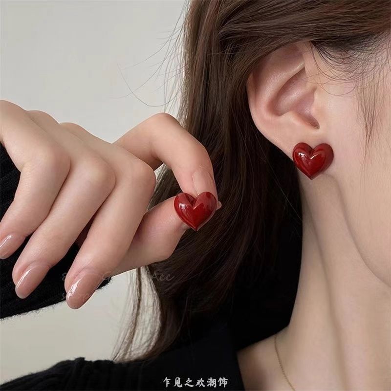香港風レトロな赤い愛の幾何学的なピアスの流行の高い顔の値2024上の新しいシンプルな通勤イヤリングの耳飾り