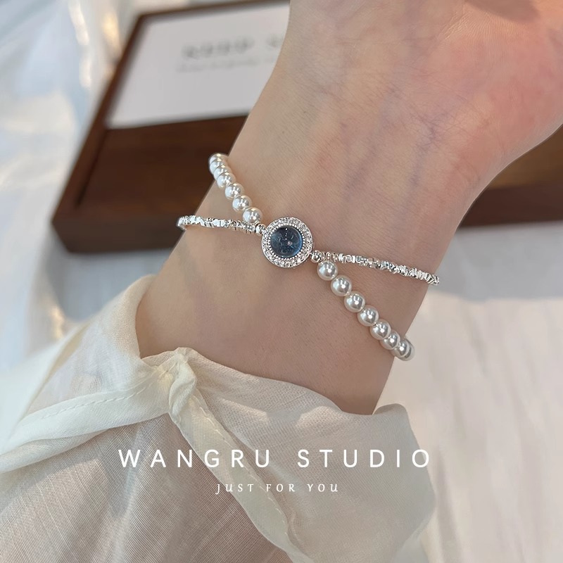 2024新型海藍宝真珠砕銀ブレスレット清冷小衆甘美で洗練された個性的なアクセサリーブレスレット