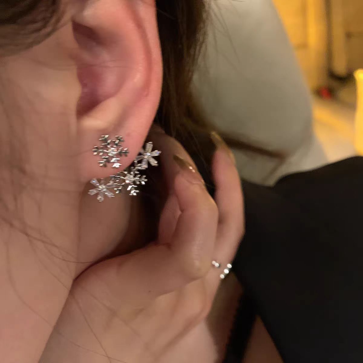 韓国のブロガーのchoker雪のジルコンのピアスの1項のファッションの気質の通勤の秋冬の新型の女性のイヤリング