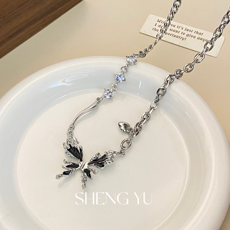 甘くてクールなギャルの風の液体の蝶の鎖の骨の鎖は軽くて豪華で高い顔の価値の個性の爆発金は百合の精巧な女性のネックレスの首飾りを使います。