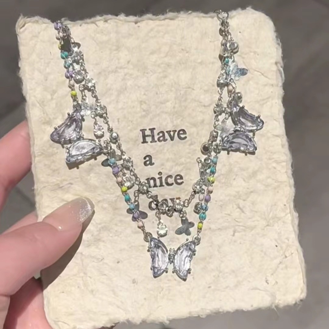 赤い本の同じタイプの紫蝶の二重のネックレスの大衆の設計の高級感の精巧で軽い贅沢な気質のファッションの首の鎖