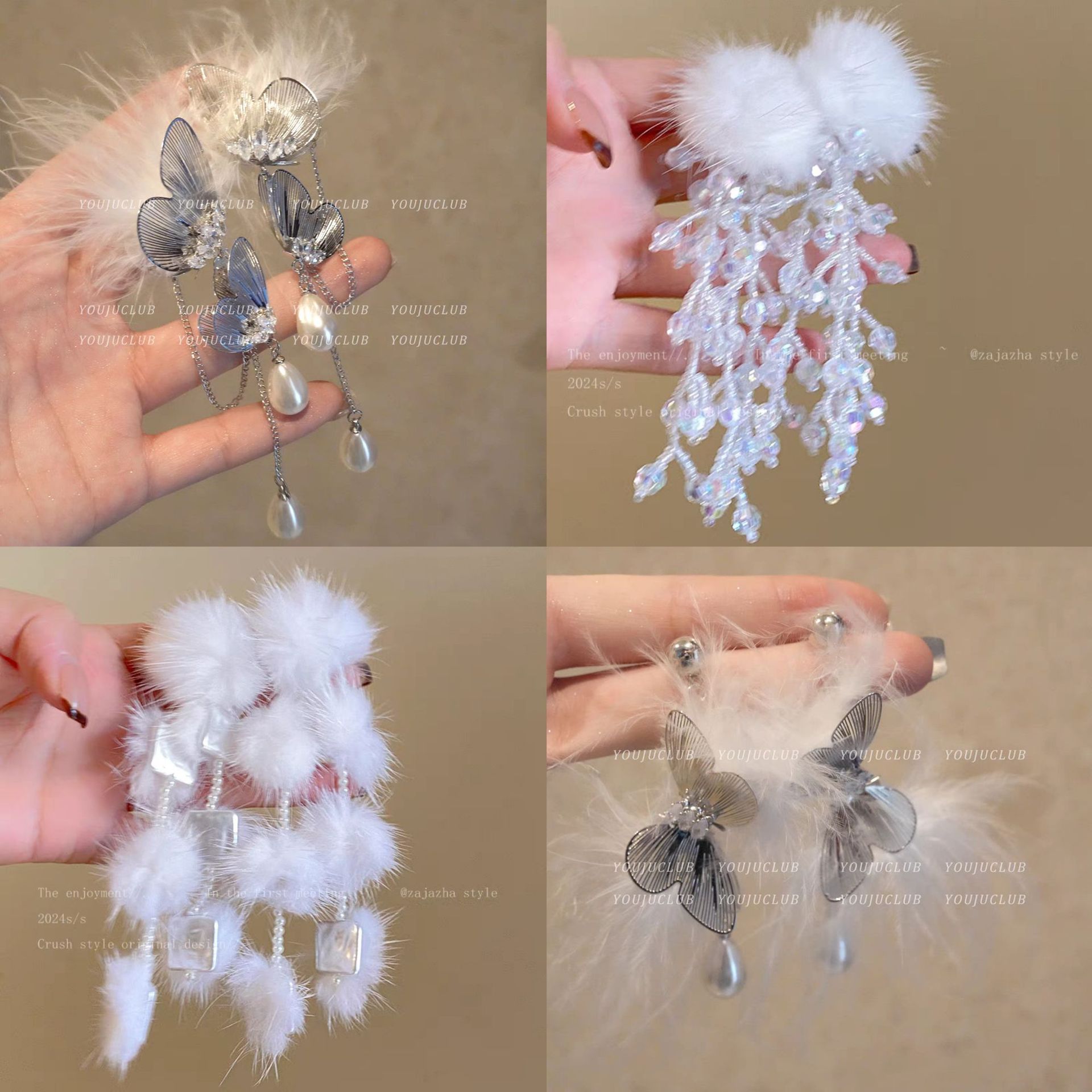 2025新型の羽毛のフリンジのイヤリングは軽くて高級感があります。