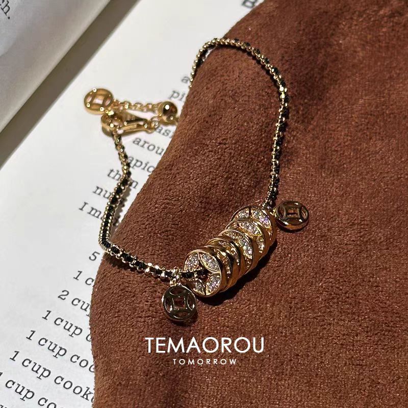 小紅の本の同金のお金は多くて黒い縄のブレスレットの大衆の設計の高級感のファッションの小さい香風の百合の手は女性を飾ります。