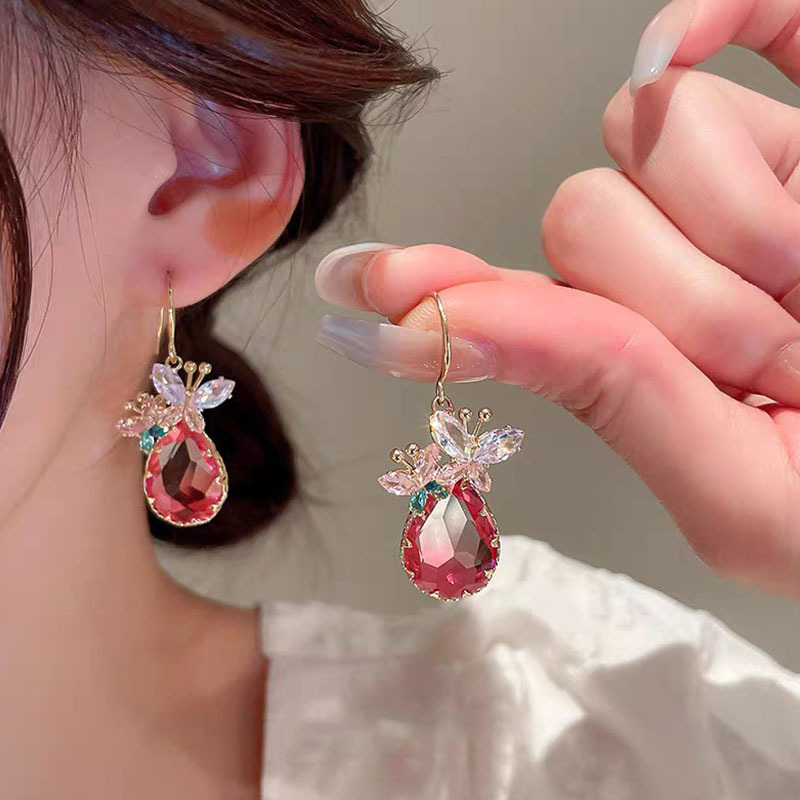 日韓系気質風薔薇ピンクグラデーション蝶ピアス小衆デザイン百合高級感軽贅沢耳飾り女