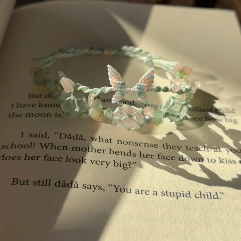 新中国式莫奈花園蝶砂利ブレスレット編み手綱森系癒し小紅本同項編み手飾り