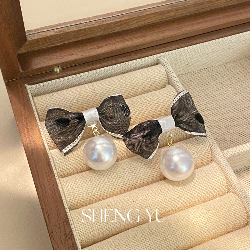 韓国風のサテンの黒い蝶結びの真珠の耳のアクセサリー