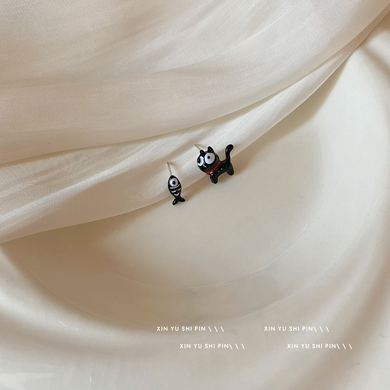 小衆フランスツバキの花のイヤリングの小さい香りの風の白黒の油の花の耳飾りの高級感のins風の四角形のイヤリング