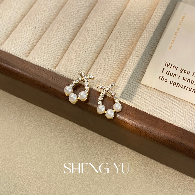 洗練されたダイヤモンド交差円金色気質イヤリング気質ネット赤防爆型女性軽量高級感耳飾り