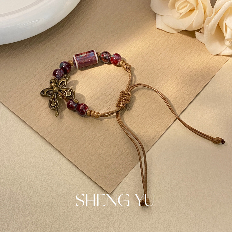 民族風小象ビーズブレスレット女子新中国式高級感小清新創意小衆気質手串アクセサリー