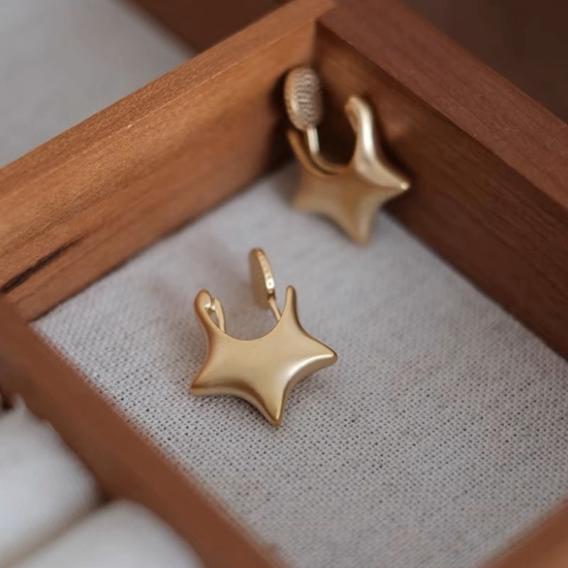 つや消しの金色の五角星の耳に蚊取り線香の皿を挟みます。