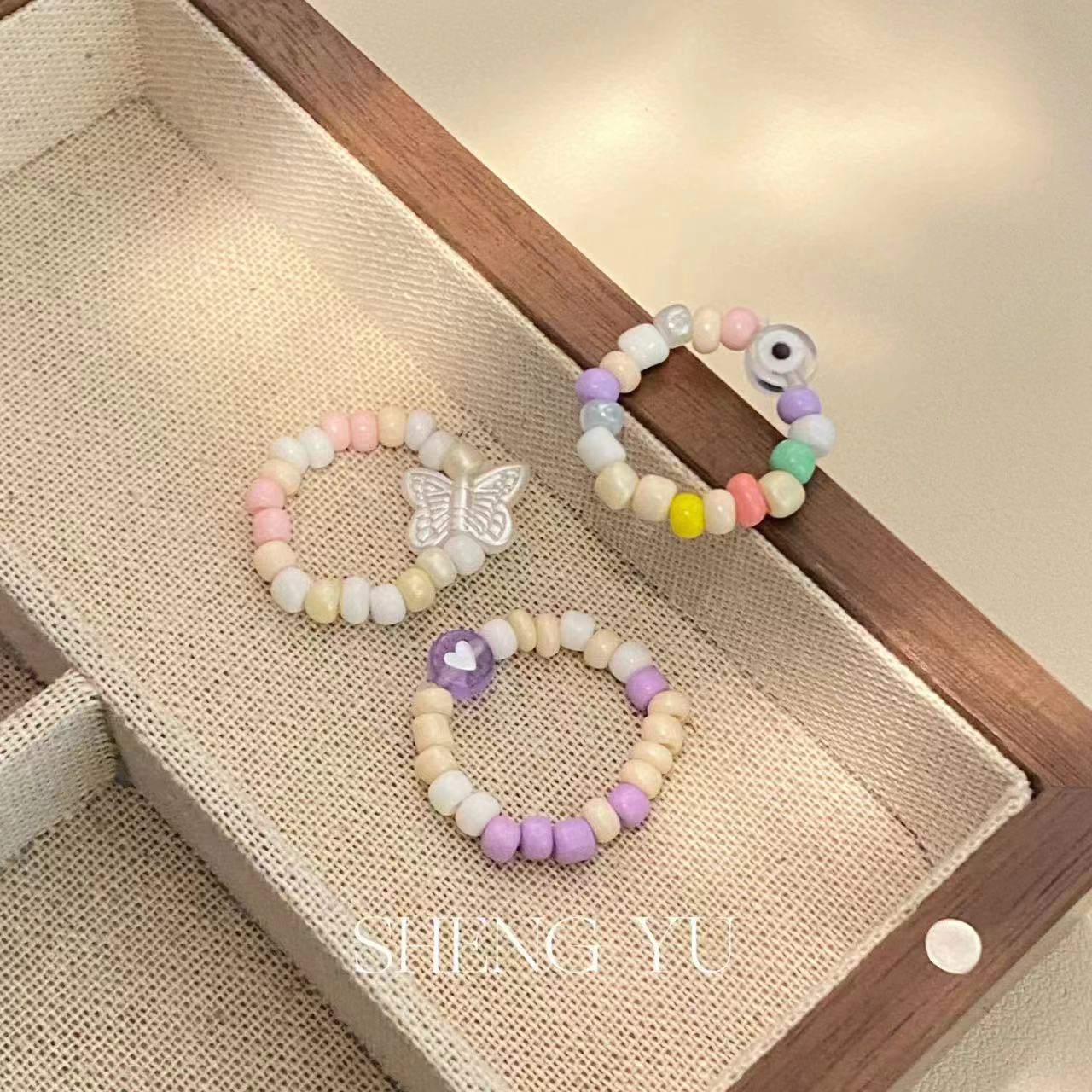 ドーパミン甘美小清新ins数珠食指戒三点セットデザイン感独特の百合気質女性指輪