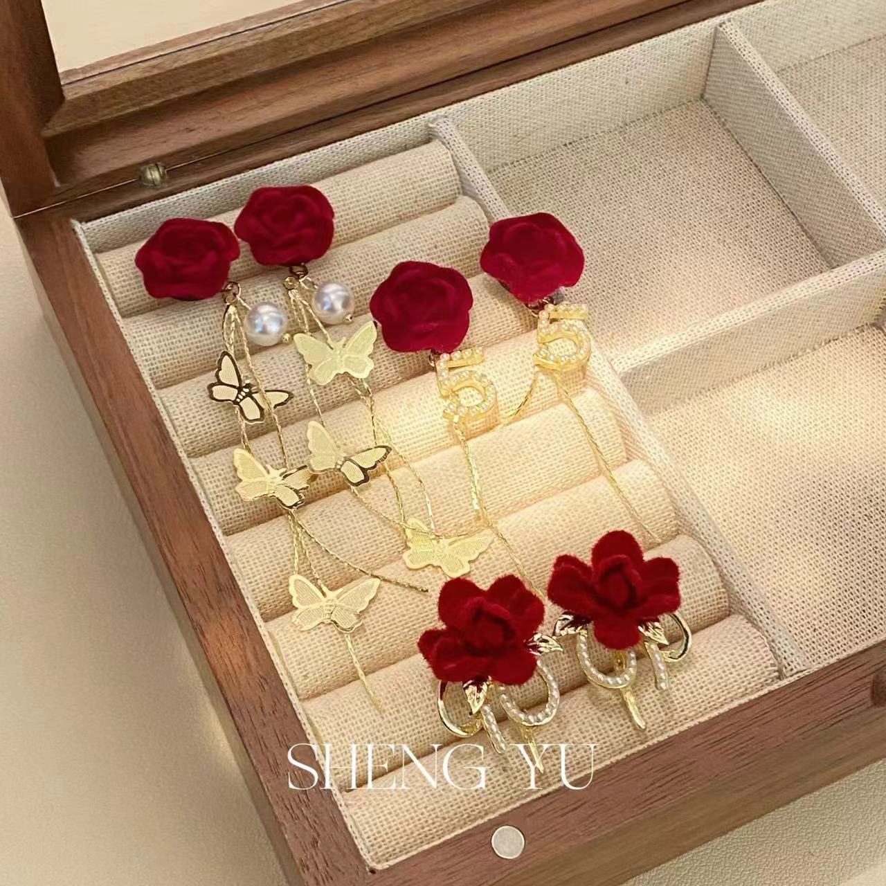 2024新型植毛花ピアス甘美で優しい風デザイン気質独特で洗練されたロングタイプの女性イヤリングアクセサリー