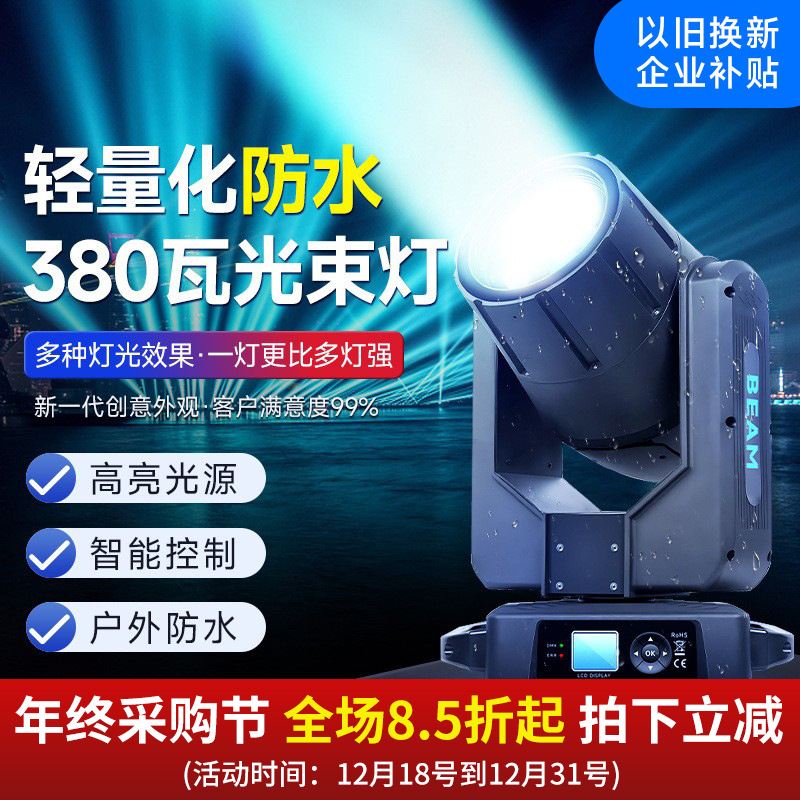 軽量防水380ワットビームライト、ムービングヘッド、屋外大型ステージ照明、中古交換、企業補助