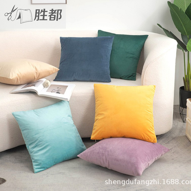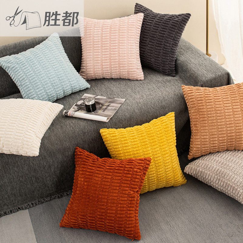 Shengdu ins 枕ベルベットとリネンシンプルな無地枕ケースリビングルームランバーサポートオフィスベッドサイドソファ枕クッション