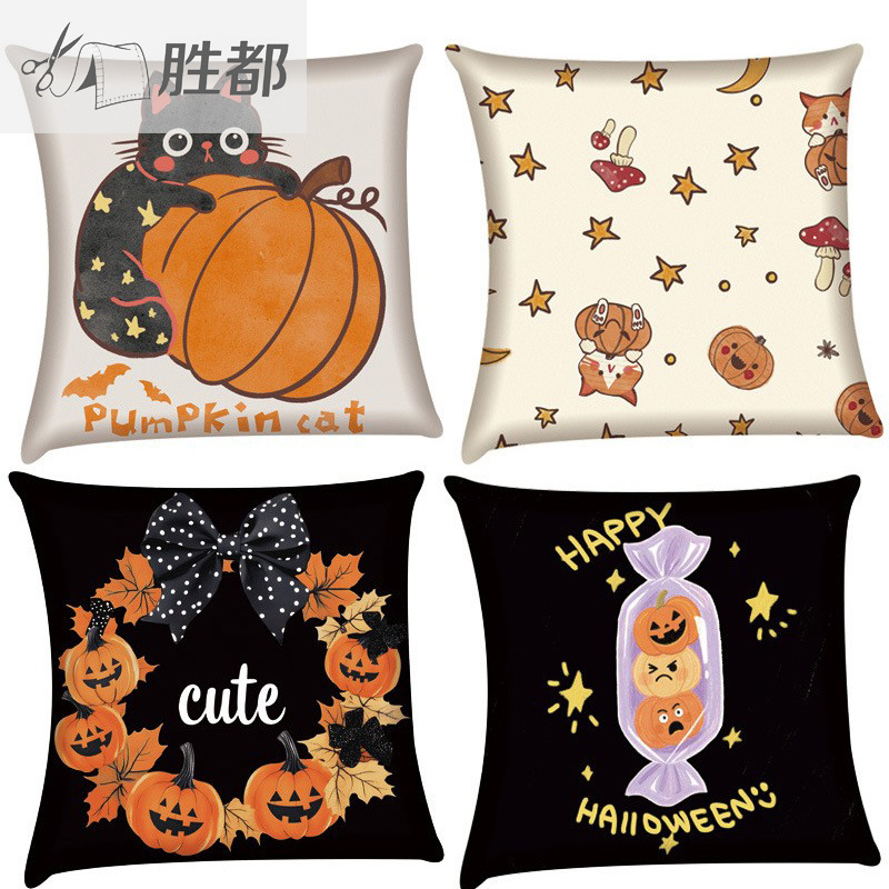 Shengdu ハロウィン枕カバーコアなしカボチャリネンソファベッドサイドクッションクロスボーダー卸売枕枕カバー