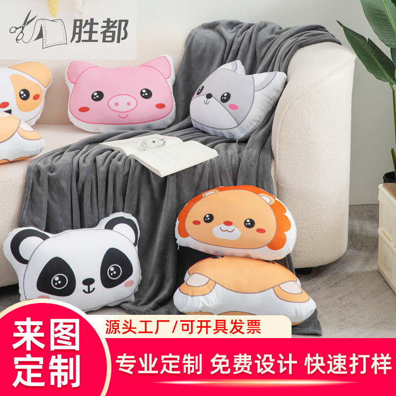 カスタムブランケット枕ツーインワンフランネル漫画動物車オフィス昼休みブランケットギフト卸売