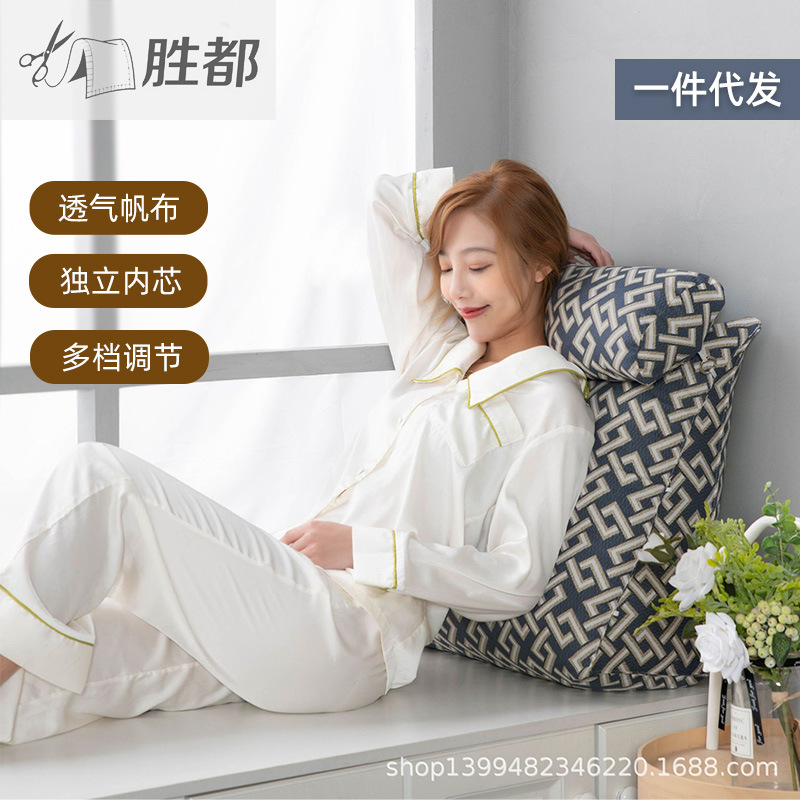 勝都ベッドヘッドクッションソフトパックベッド枕北欧風帆布寝室窓辺三角腰枕ソファ背もたれ