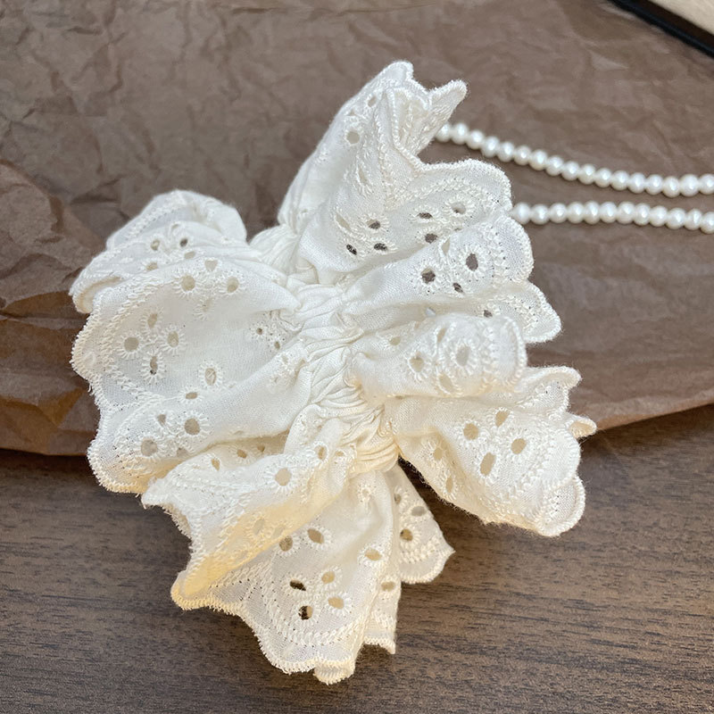 趙魯思と同じスタイルの清潔でレトロな雰囲気のフランスの重刺繍レースベージュヘアリングと中空ヘッドフラワー
