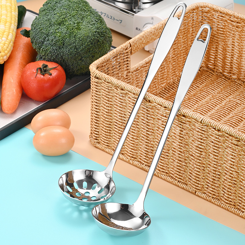 304超密な広い縁の厚いステンレスの濾過スプーンの油脂の濾過油のスプーンの濾過網の豆乳は泡を打って泡の家庭のスプーンをすくい取ります。