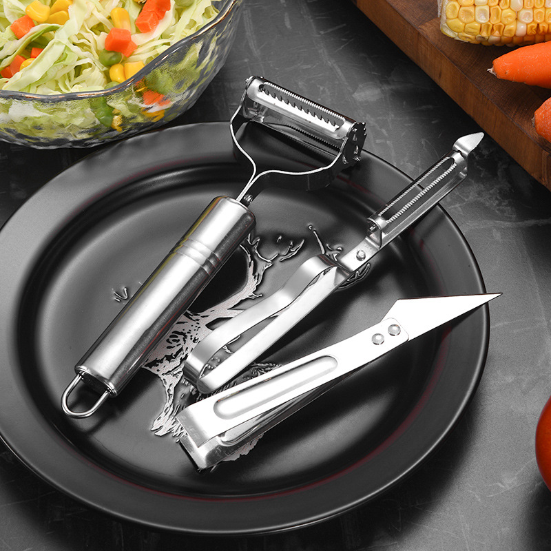 ステンレスの皮むきナイフ三点セット家庭用多機能おろし器アヒルの毛挟み果物ナイフ皮むき器瓜果削り