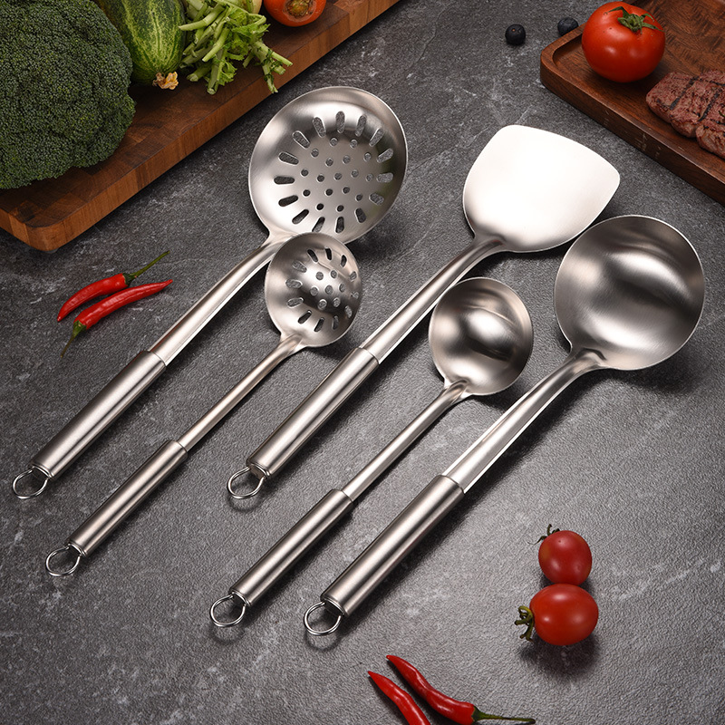 304ステンレスの鍋のシャベルに長い柄のシャベルを加えて、家庭用のセットを炒めます。