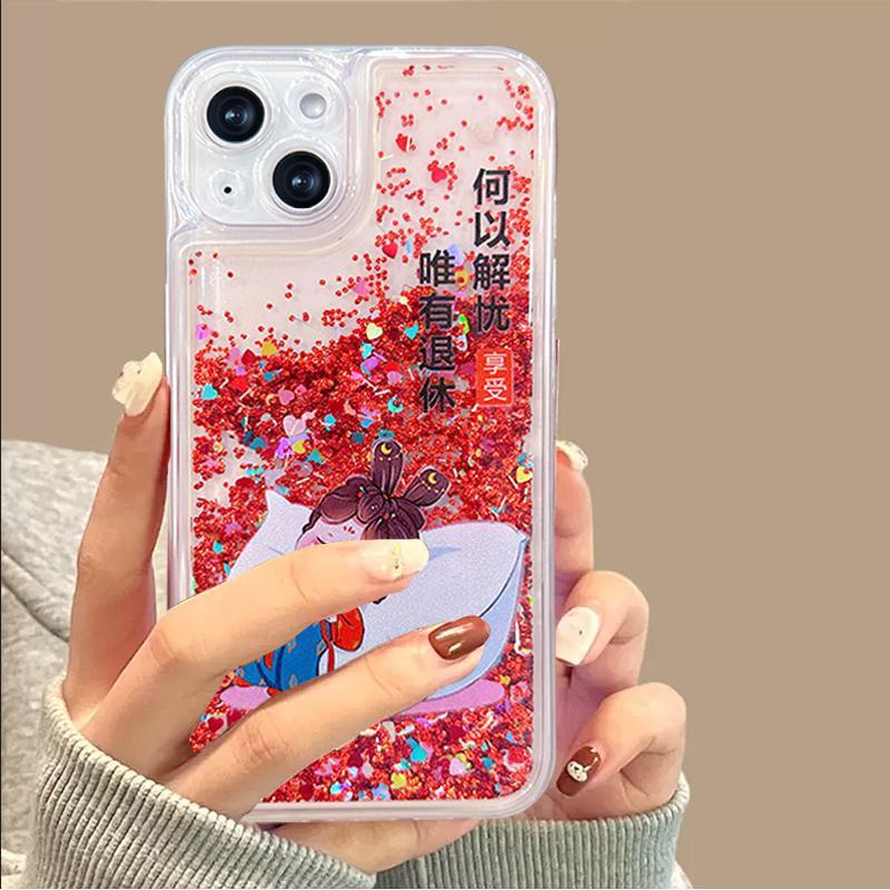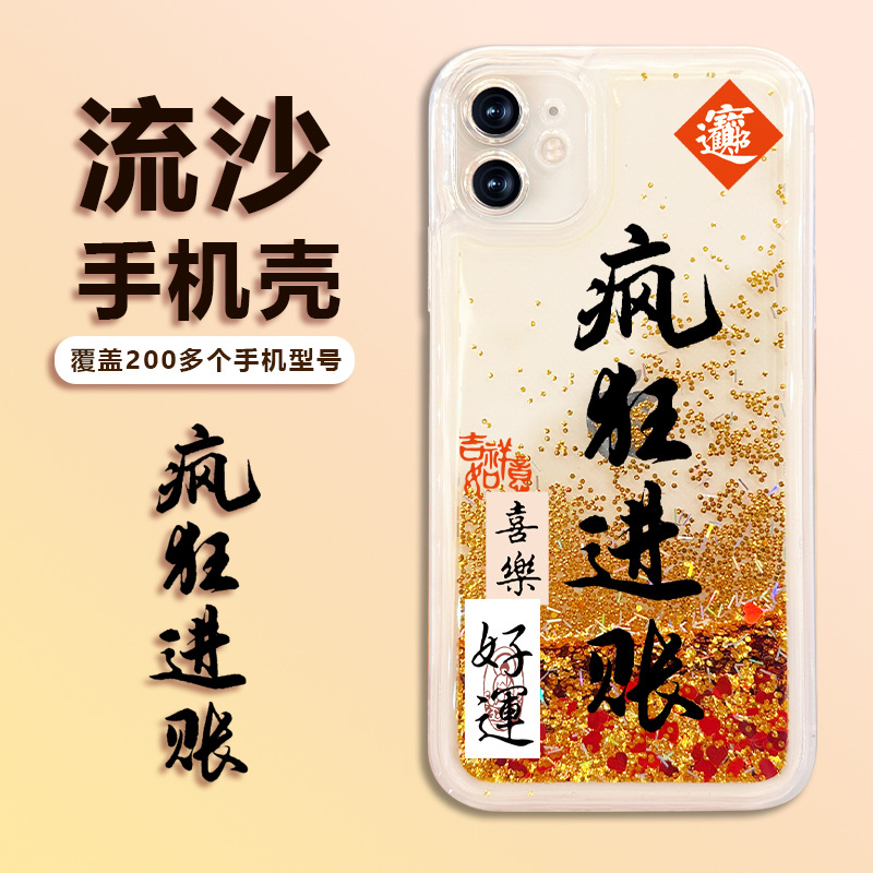 リンゴ/華為/栄光/oppo/vivo金色の砂コイが龍門の赤い流砂携帯ケースを適用する