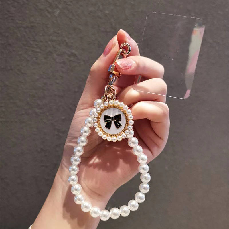 ネット赤白色真珠吊り鎖携帯電話ケース真珠ins創意ソフト真珠吊り鎖携帯手首吊り飾り携帯