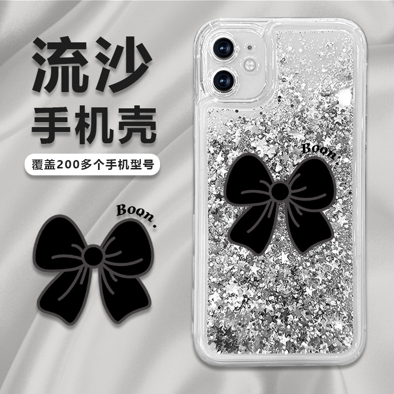 リンゴ/華為/栄光/oppo/vivo銀色の砂小蝶ネクタイ流砂携帯ケースを適用する
