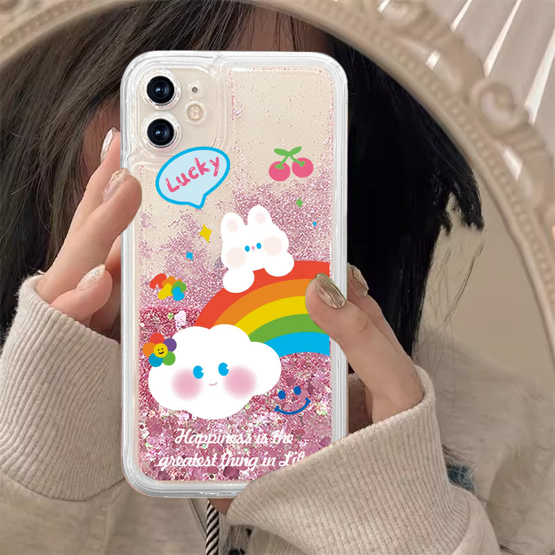アップル/華為/栄光/oppo/vivピンクの砂虹ウサギファッション流砂携帯ケースを適用する