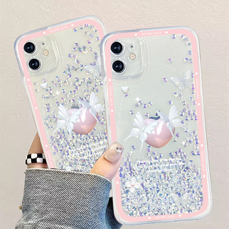 リンゴ/華為/栄光/oppo/vivo紫ドリル石砂純白蝶流砂携帯ケースを適用する