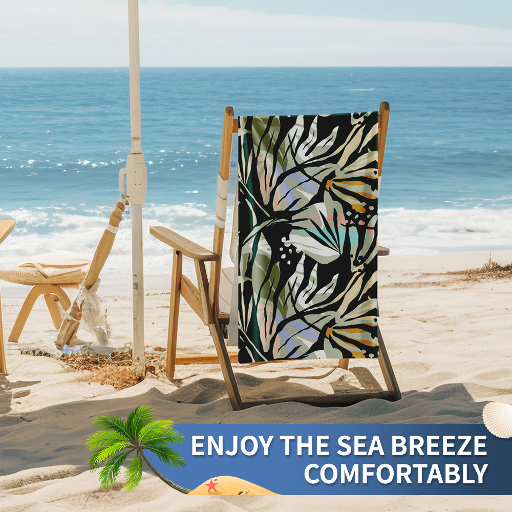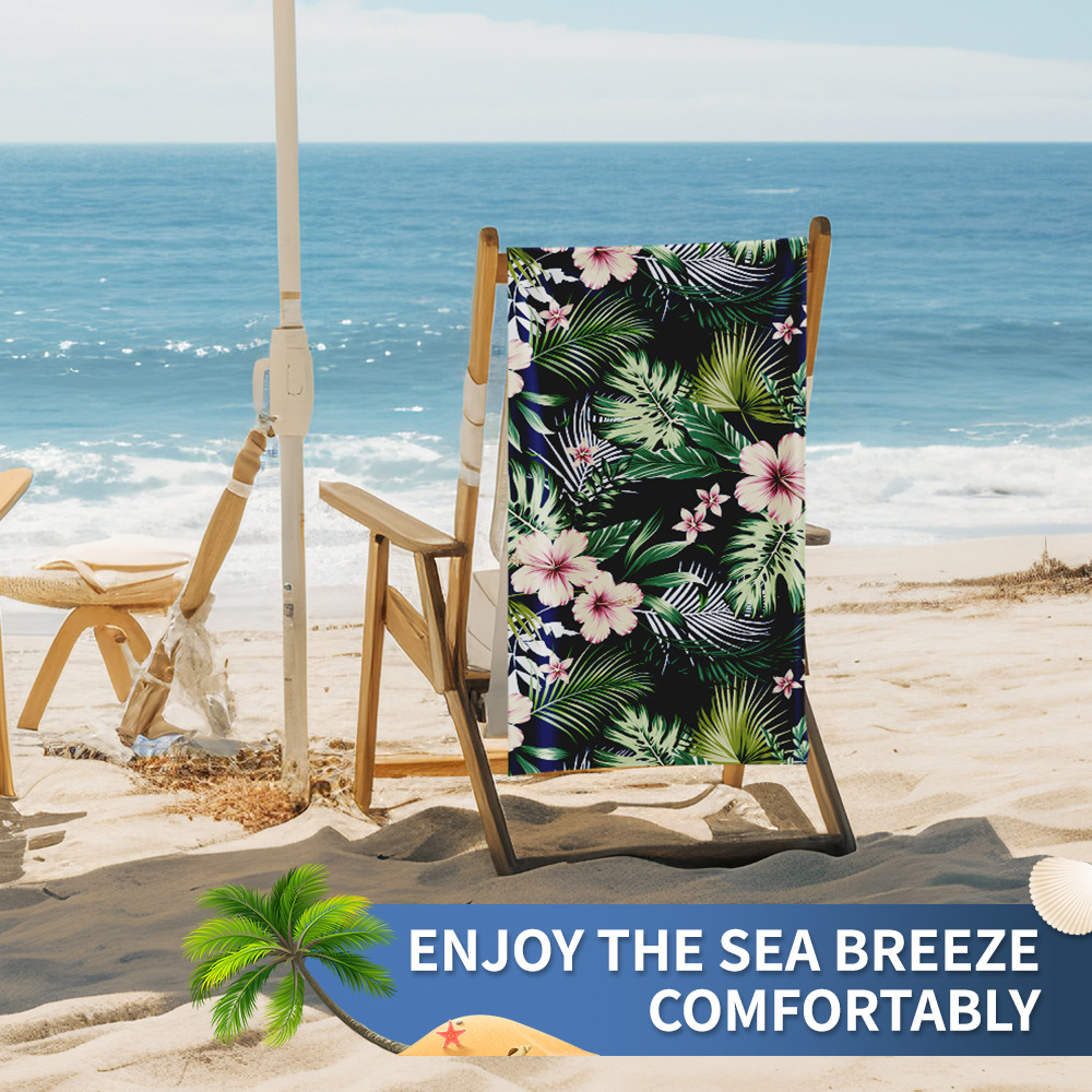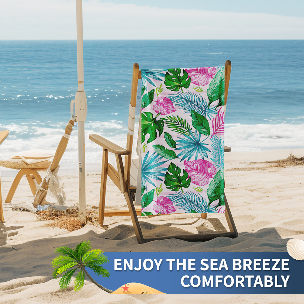 トランジット貿易両面フリースビーチタオル、熱帯植物柄、マイクロファイバー印刷、速乾タオル、卸売バスタオル
