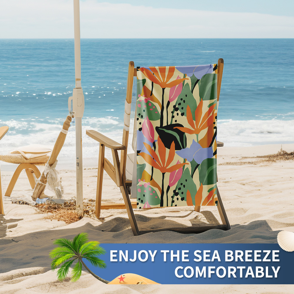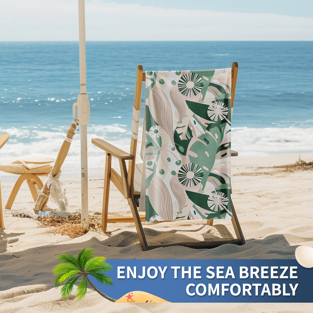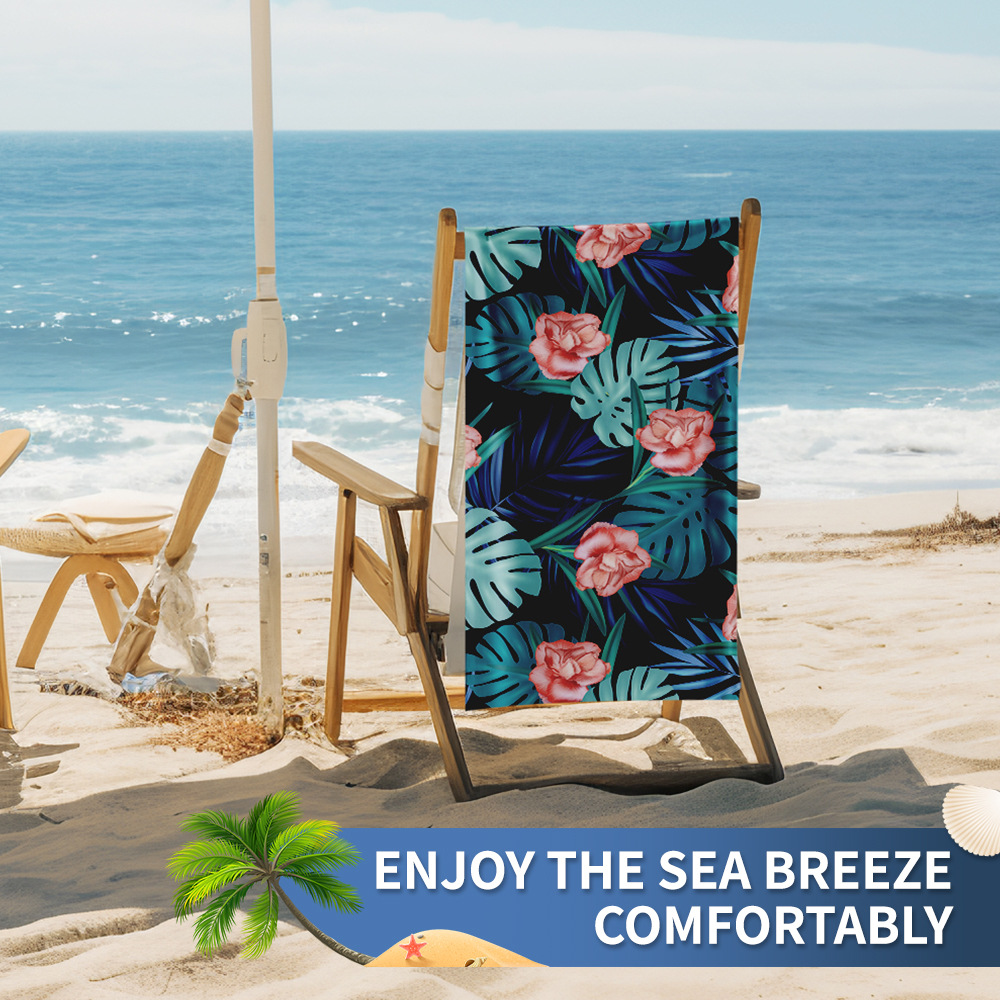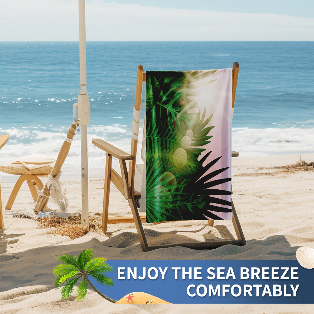 トランジット貿易両面フリースビーチタオル、熱帯植物柄、マイクロファイバー印刷、速乾タオル、卸売バスタオル