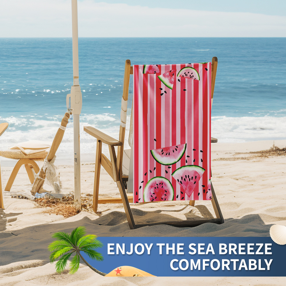 スイカ柄プリントビーチタオル、クロスボーダー、海辺での休暇に最適、両面フリース、速乾性ビーチタオル、吸水タオル